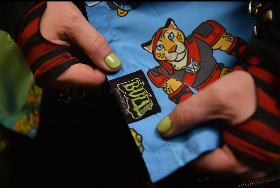 Every clothing item in the Bull Airs line is a custom artist creation made in small batches or pre-order exclusives inspired by late-20th century pop culture.